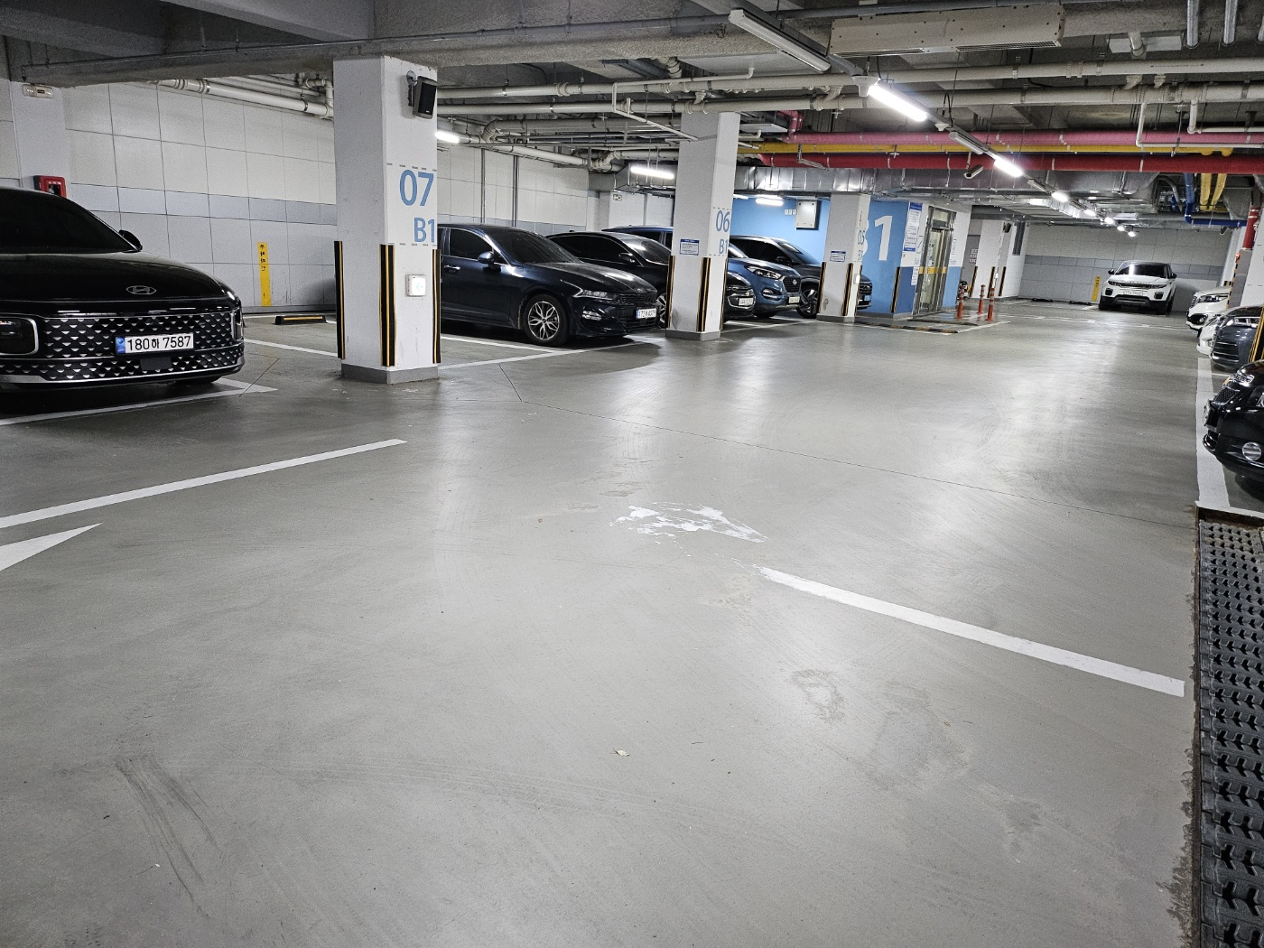 주차장 입구와 주차장 내부 모습입니다. B1층으로 되어있고 상당히 협소한 편입니다. 딱히 대중교통이 좋은 위치가 아니라서 인근 거주자들 아니면 차량으로 오셔야 이용 가능하실 텐데... 출입구 쪽에도 3대 정도 추가로 주차를 하고 있음에도 불구하고 항상 자리가 부족한 상황인 거 같습니다. 주된 이유가 강습받는 아이들의 보호자들 차량으로 인함인데요. 자유수영을 원활하게 하시려면 시작 20분 전쯤에는 도착하게 가시는 걸 추천드립니다.