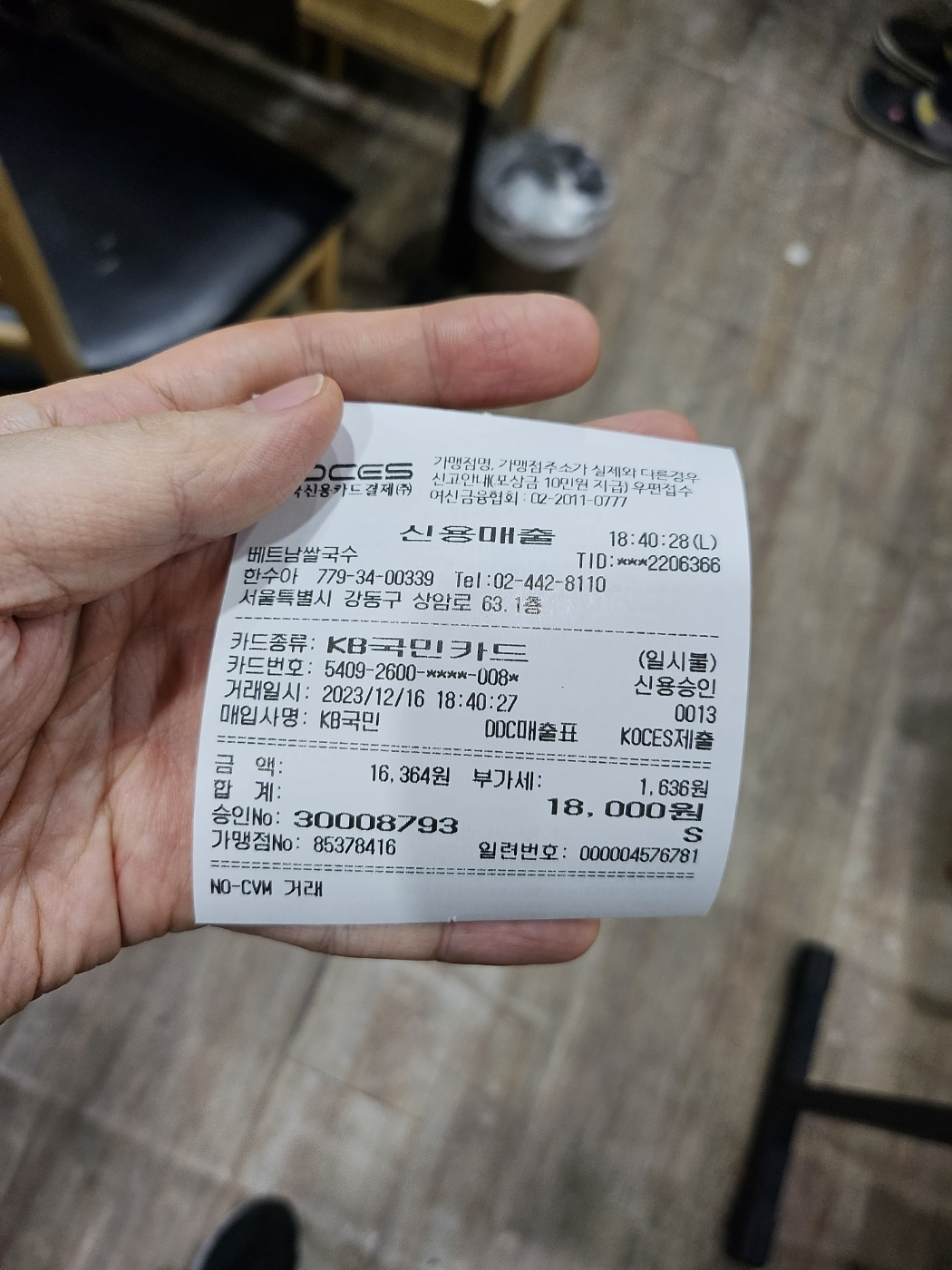 각각 9,000원씩 18,000원이 나왔네요. 완전 배가 부른 상태는 아니었습니다만 그래도 맛있는 음식을 적당한 가격에 먹을 수 있어서 만족스럽습니다. 강동구에서 쌀국수 땡기실 때 바오공 베트남 쌀국수 한 그릇 어떠신가요?