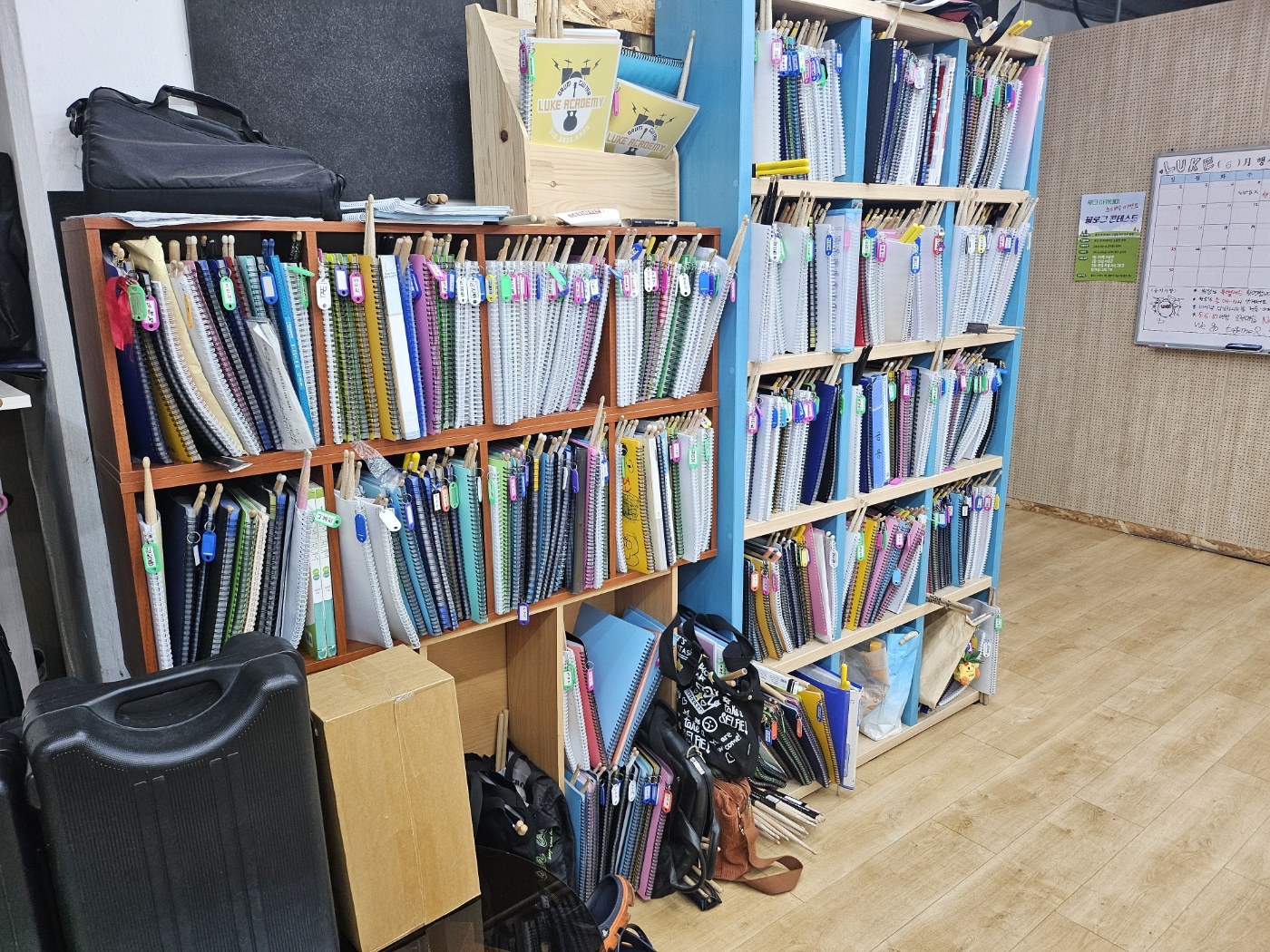 회원님들 스틱과 교재가 보관되어 있는 모습입니다. 보기만해도 실력이 늘고 있는 거 같네요. 초보부터 고수들까지 본인 레벨에 맞는 교재로 연습이 가능하십니다. 1권부터 차근차근 밟아가시면 본인도 모르게 고수의 반열에 오르실 수 있을 겁니다.